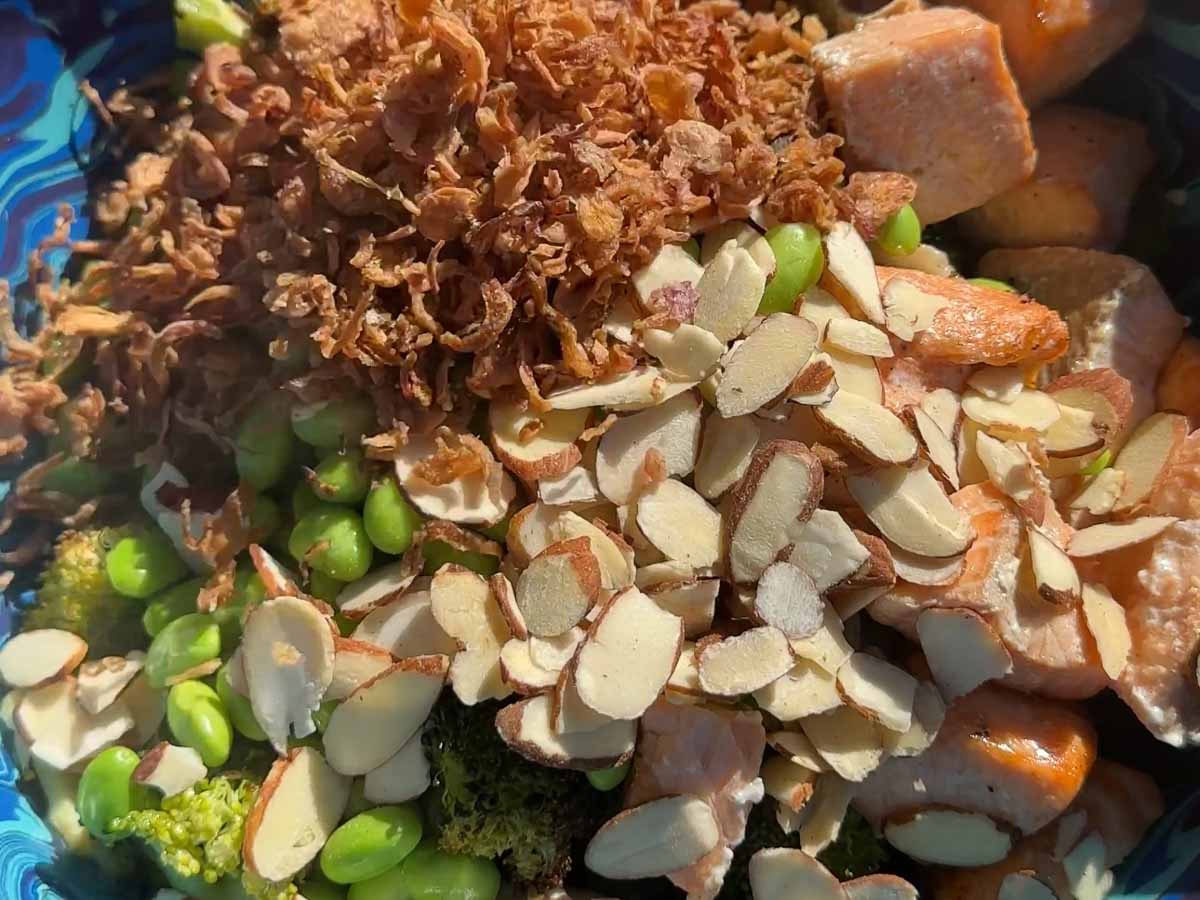 Healthy and Nutritious: Packed with omega-3 fatty acids from salmon, fiber from broccoli and Brussels sprouts, and protein from edamame, this salad provides a well-rounded and nutritious meal that will keep you feeling satisfied and energized.
